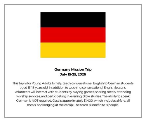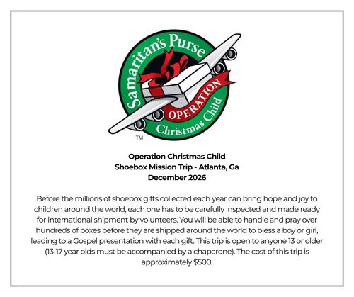 Locally, we are committed to the serving and supporting several Community Connections. We are also planning to GO on several mission trips this year. We hope everyone will find at least one way you can be supportive and serve.